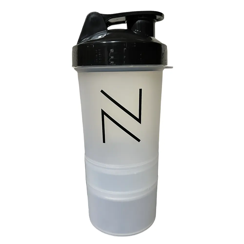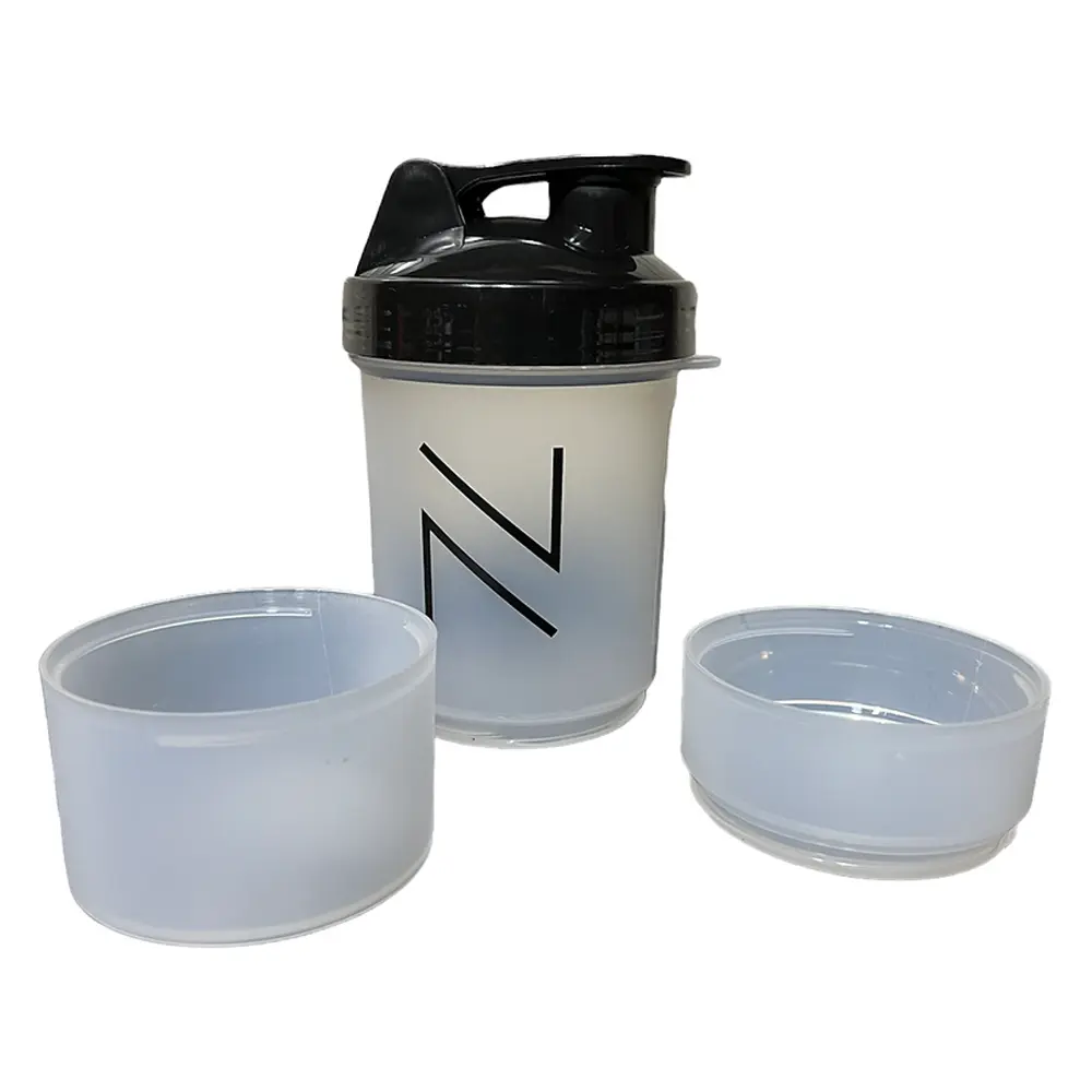 Shaker de plástico transparente de 500 ml con agitador metálico.